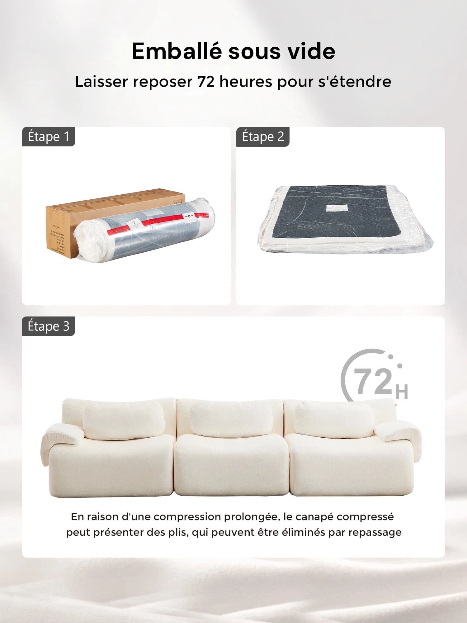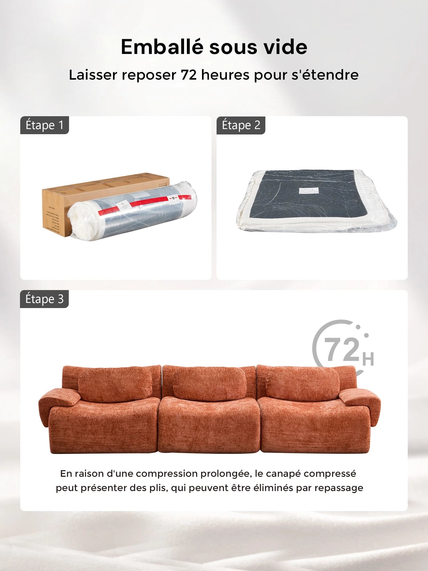 - Articles non éligibles : canapés compressés ou volumineux une fois déballés (sauf défaut ou erreur).