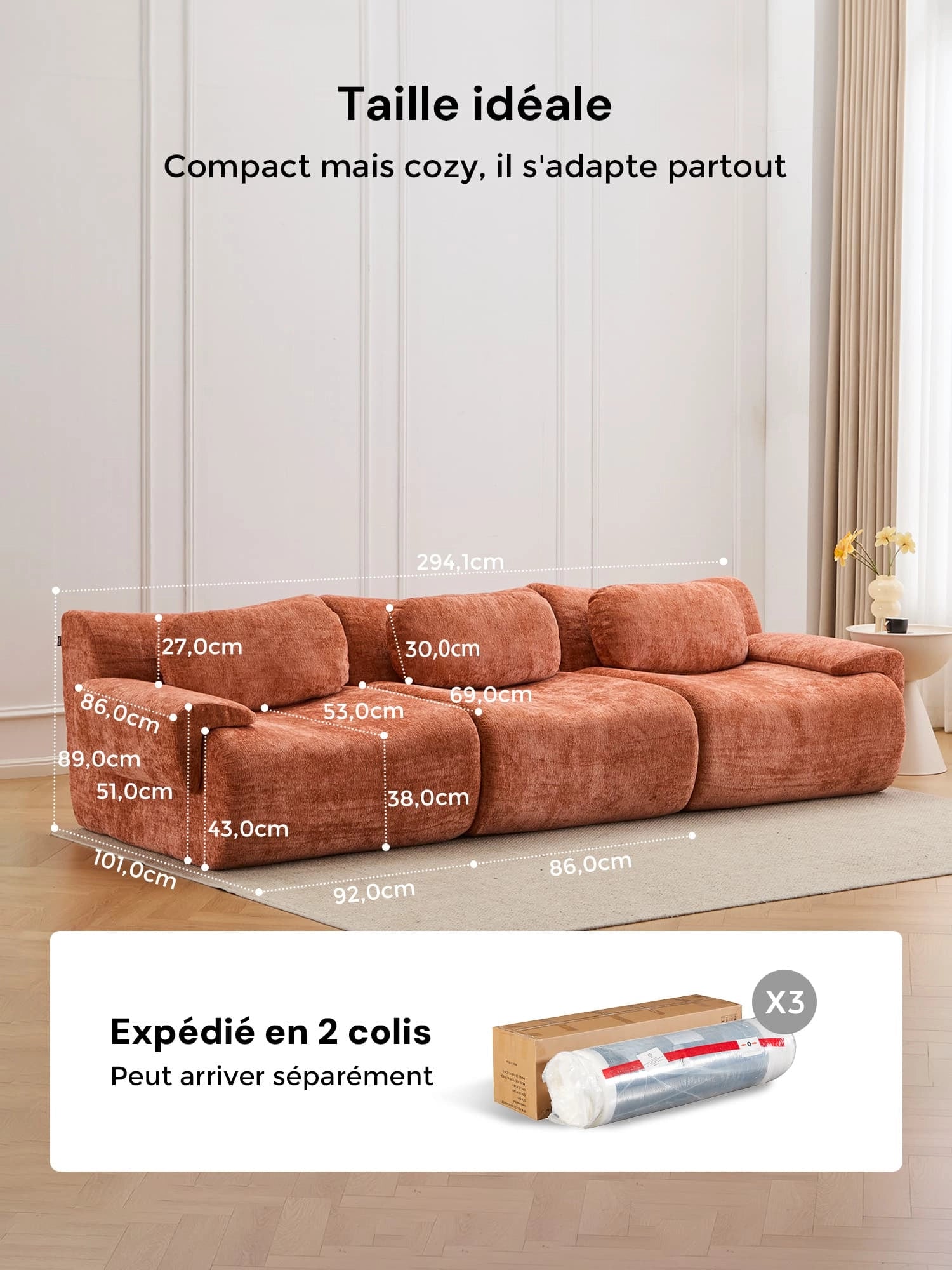 Disponible en version 2 places ou 3 places, il s’adapte parfaitement à la configuration de votre pièce — qu’il s’agisse d’un petit appartement ou d’un salon spacieux.