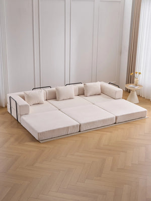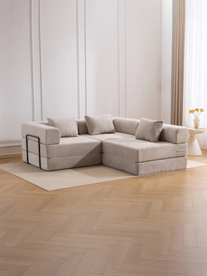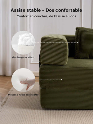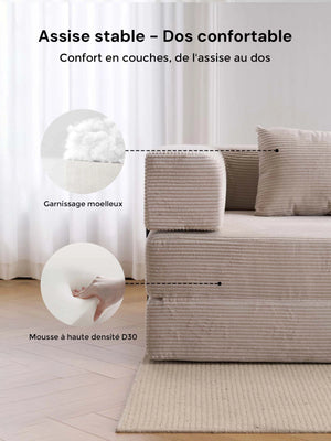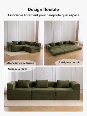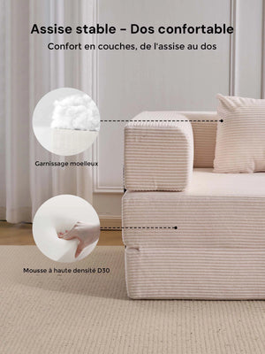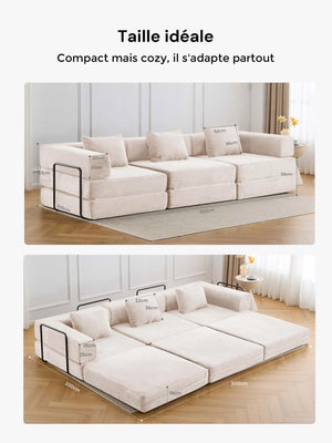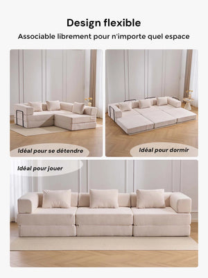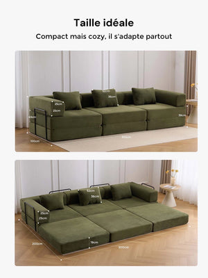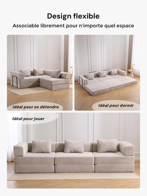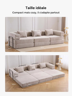 Léger, pliable et facile à réorganiser, ce canapé est parfait pour les appartements, salons et espaces polyvalents où la modularité et le gain de place sont essentiels.