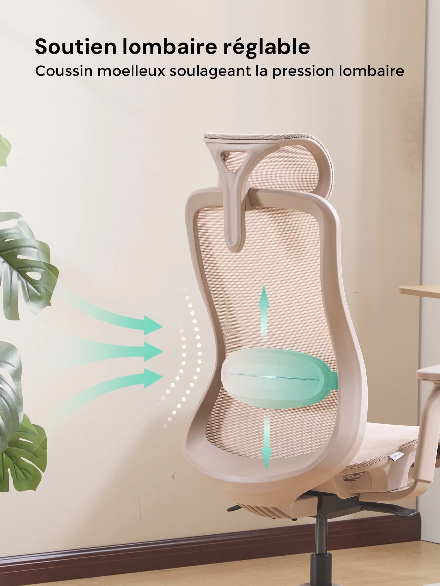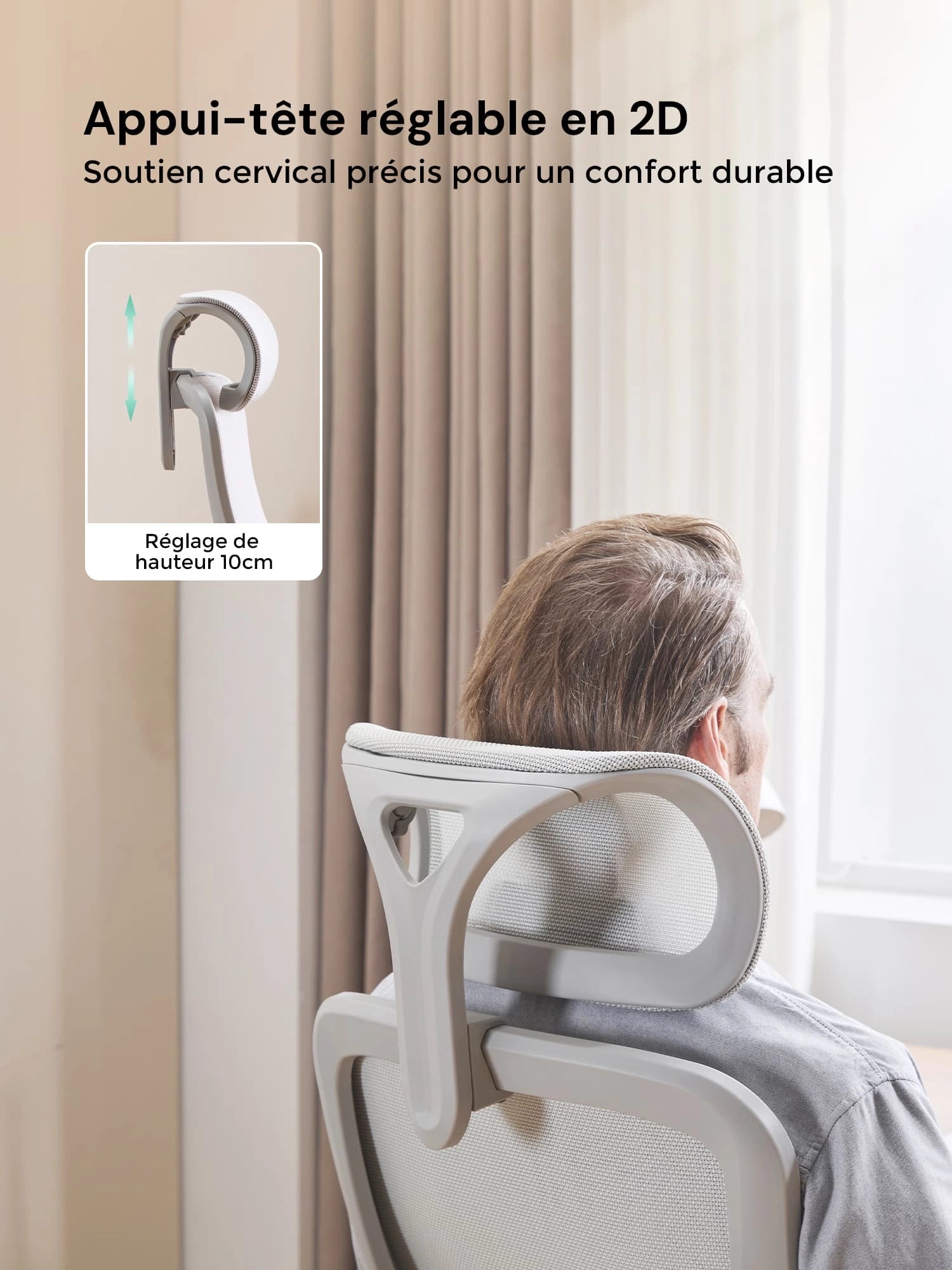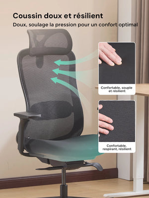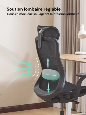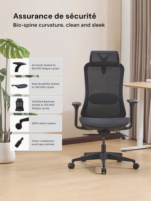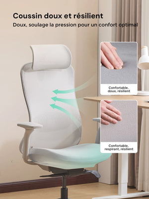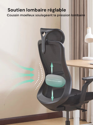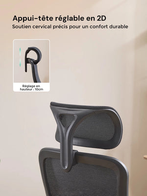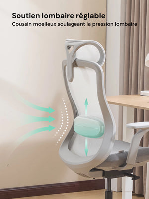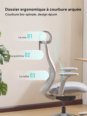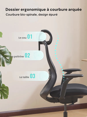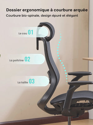 Sa forme ergonomique suit naturellement la courbure de la colonne vertébrale, aidant à réduire la fatigue lors de longues heures d’assise.