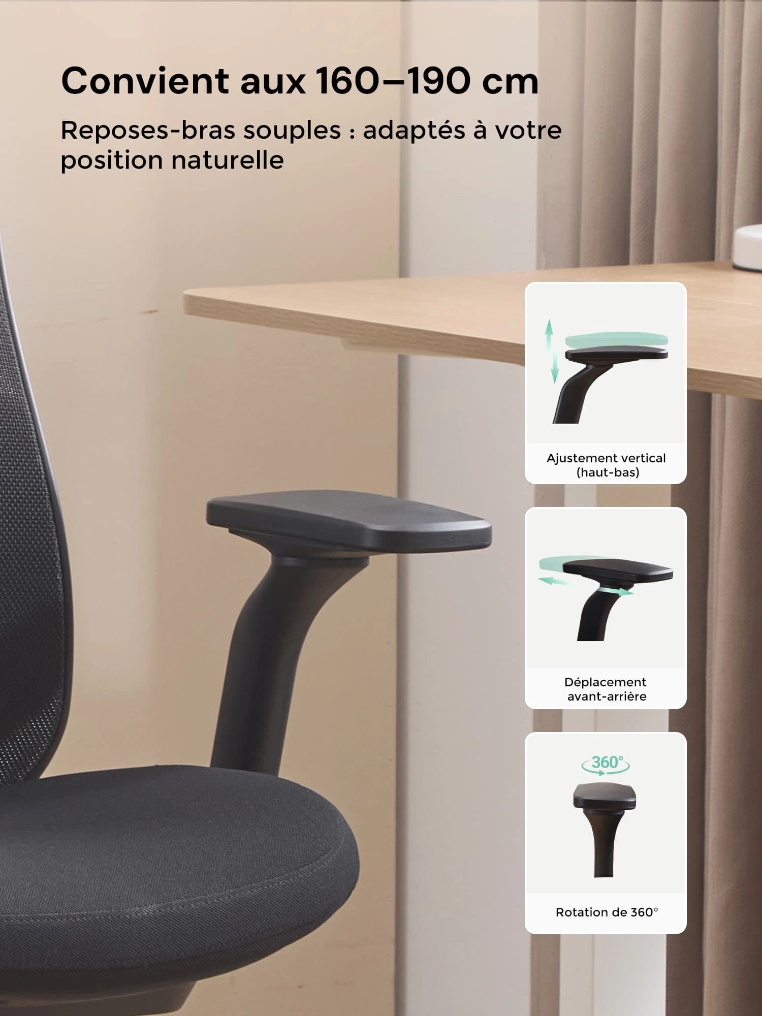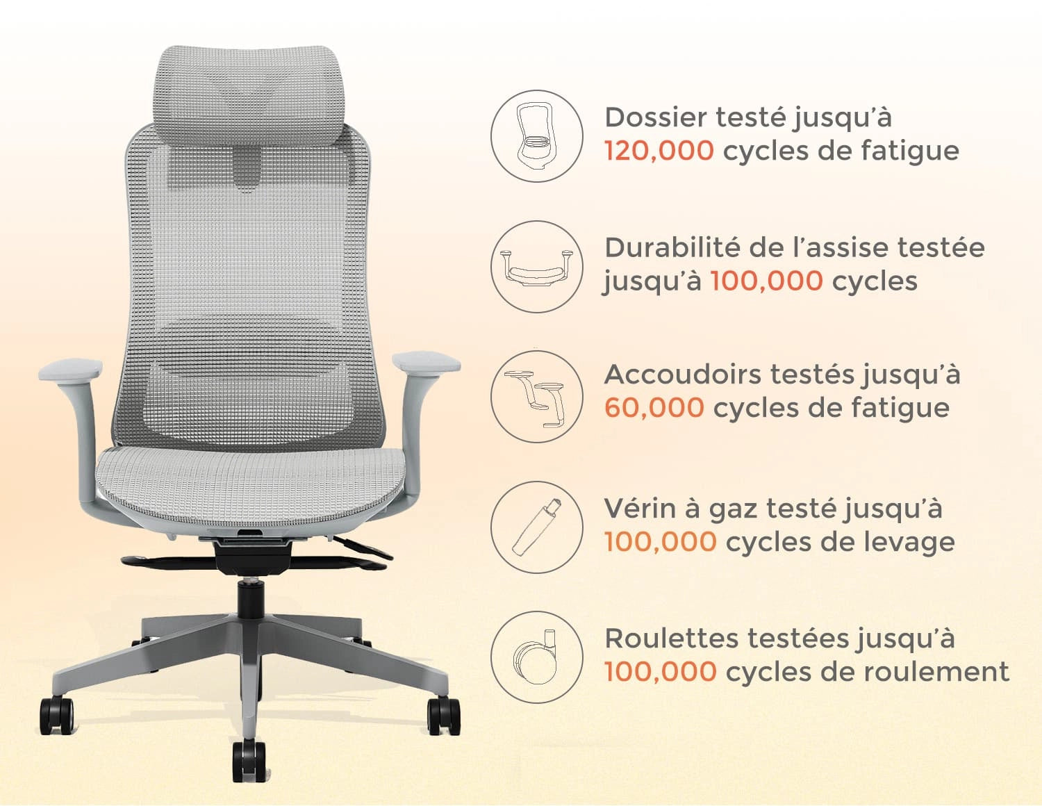 Ajustez facilement la hauteur d’assise, l’inclinaison et l’angle du dossier pour trouver la posture idéale.