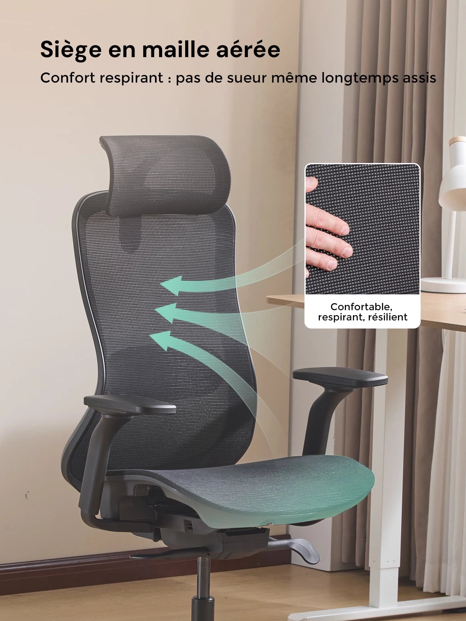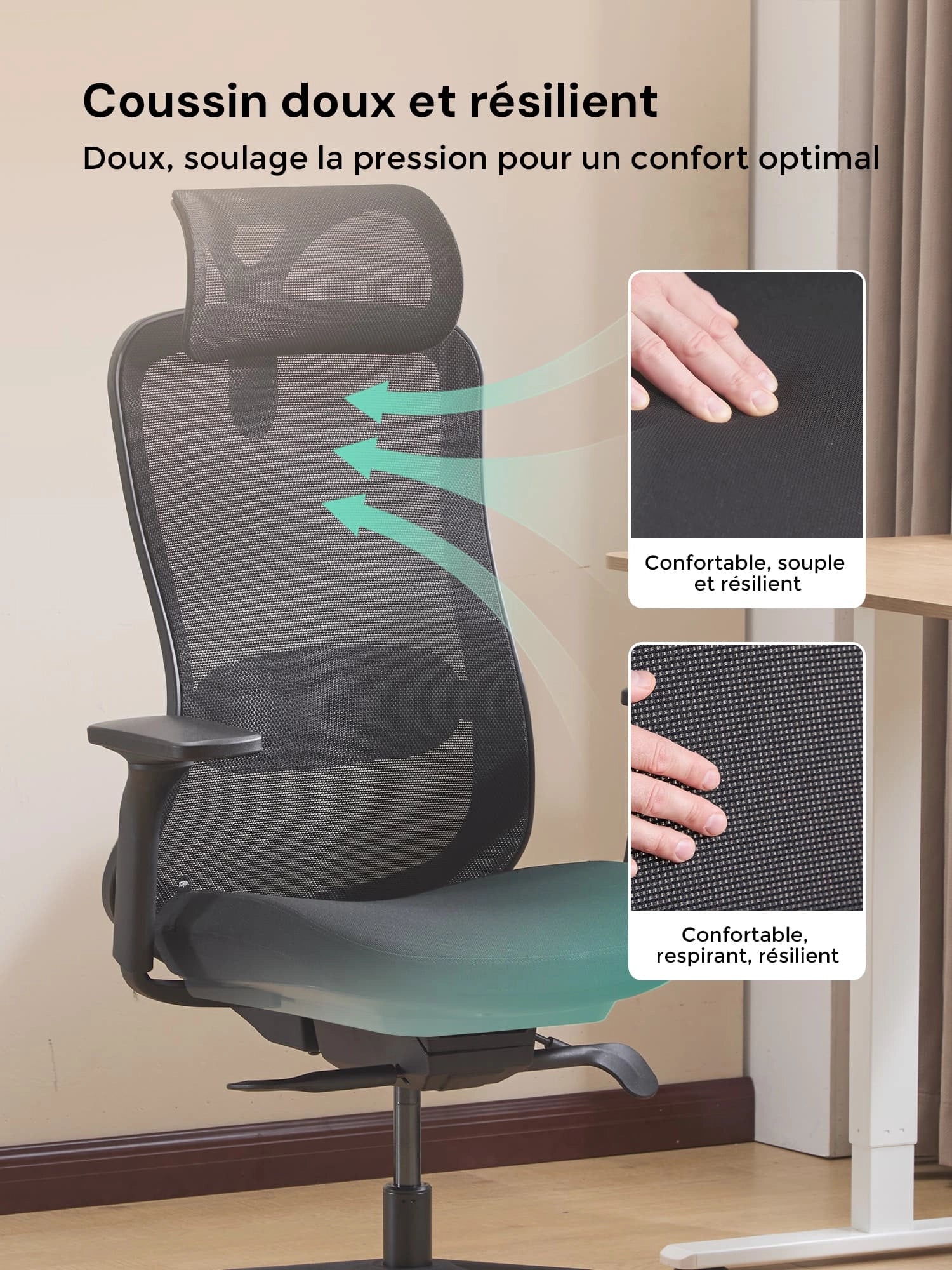 3. Maille respirante & assise en mousse au choix