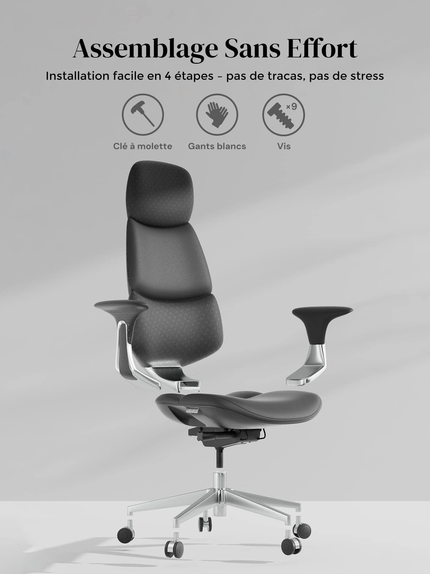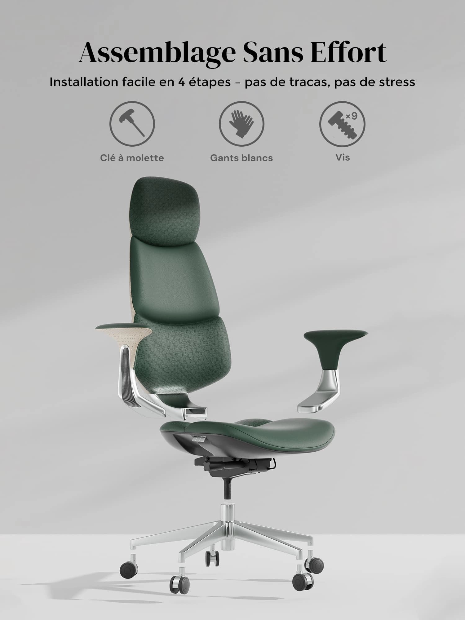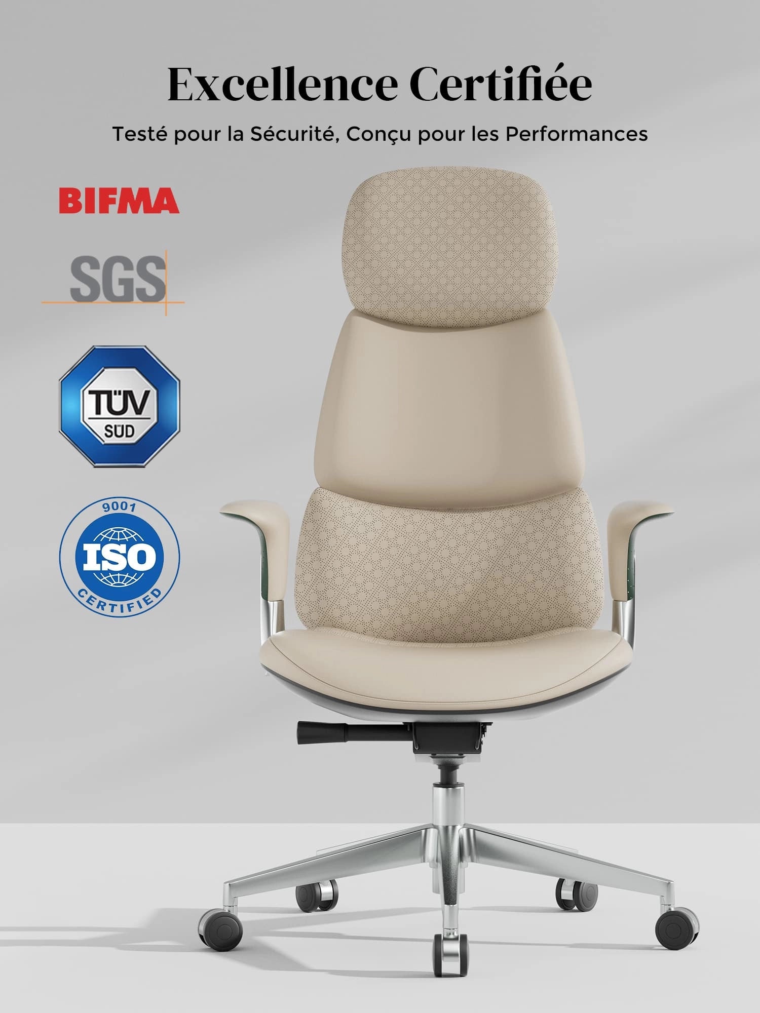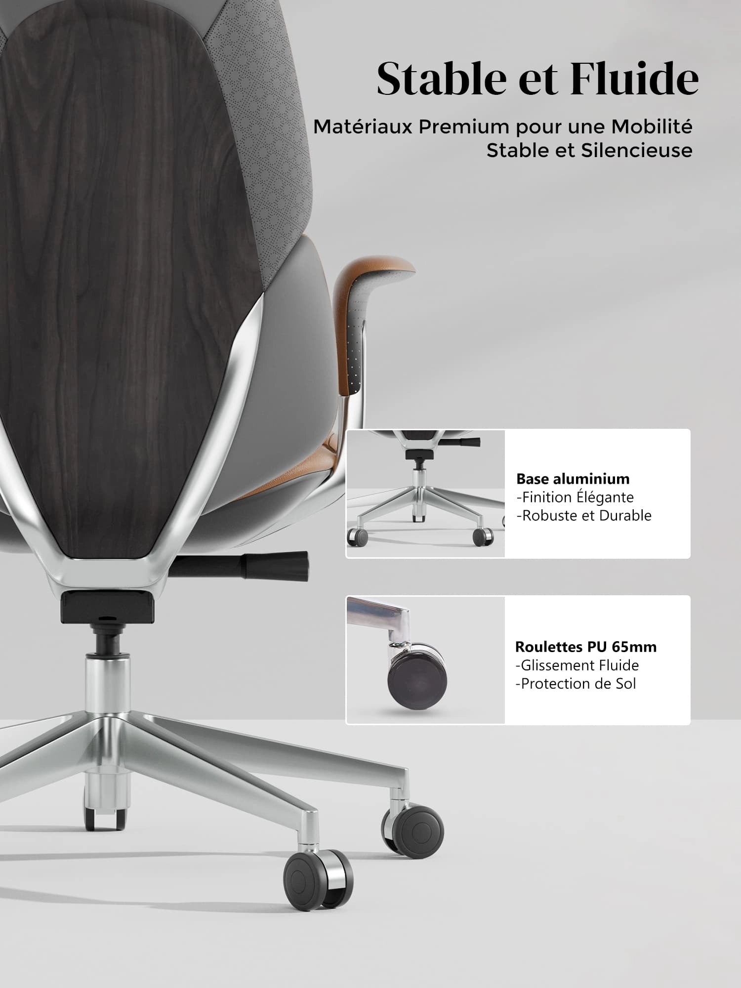 Roulettes silencieuses semi-aluminium haut de gamme, certifiées SGS / Greenguard Gold / normes ergonomiques TÜV.