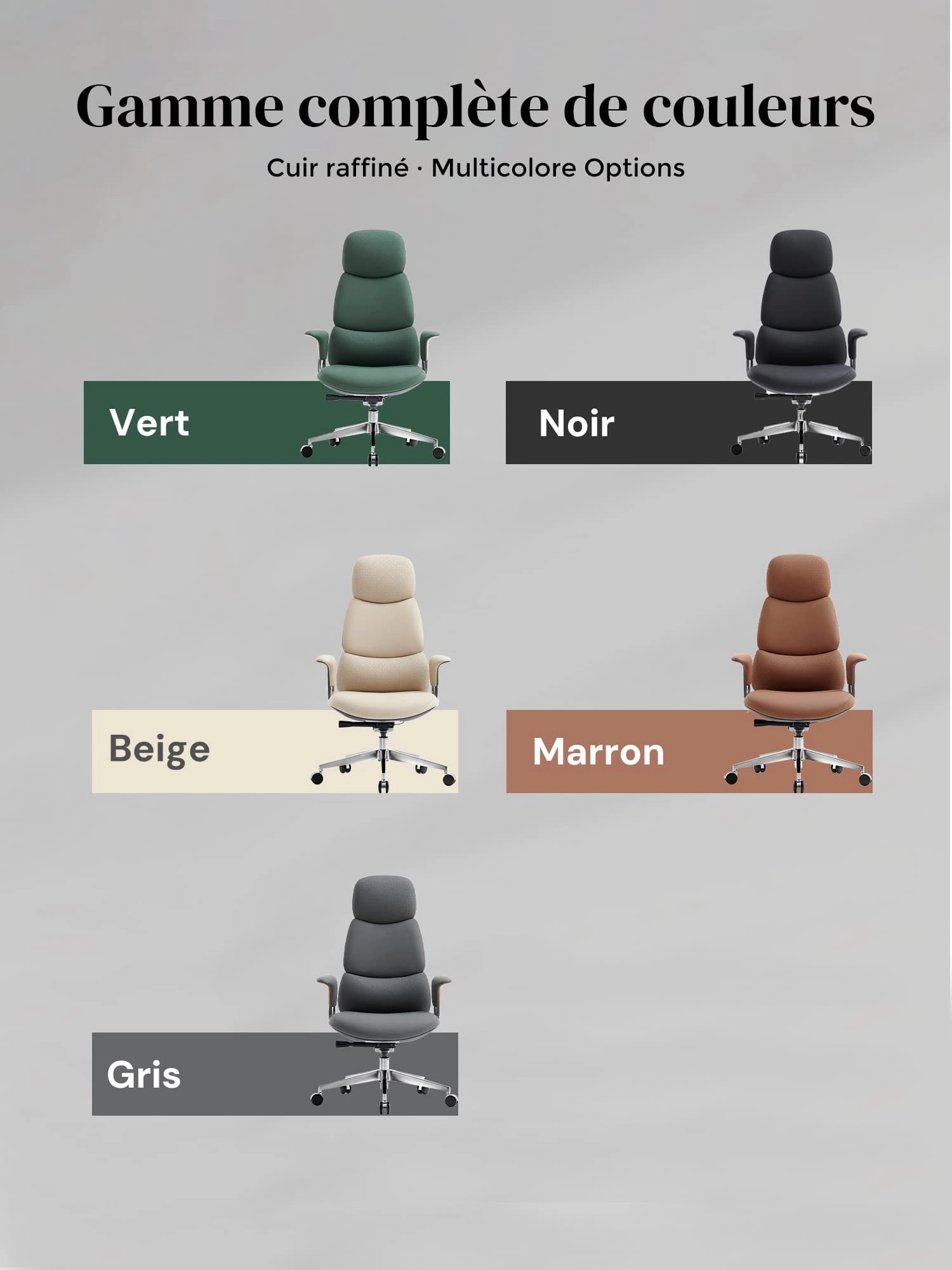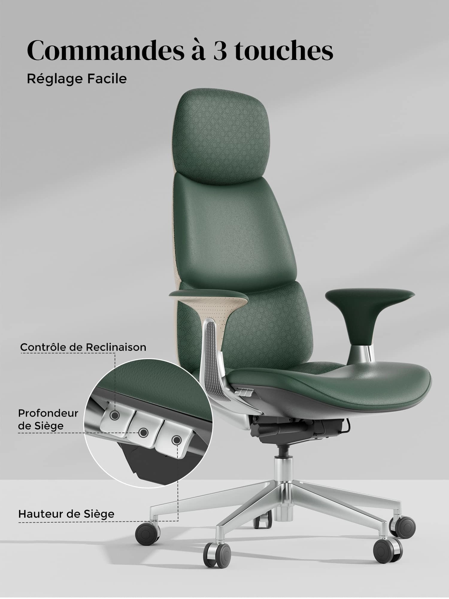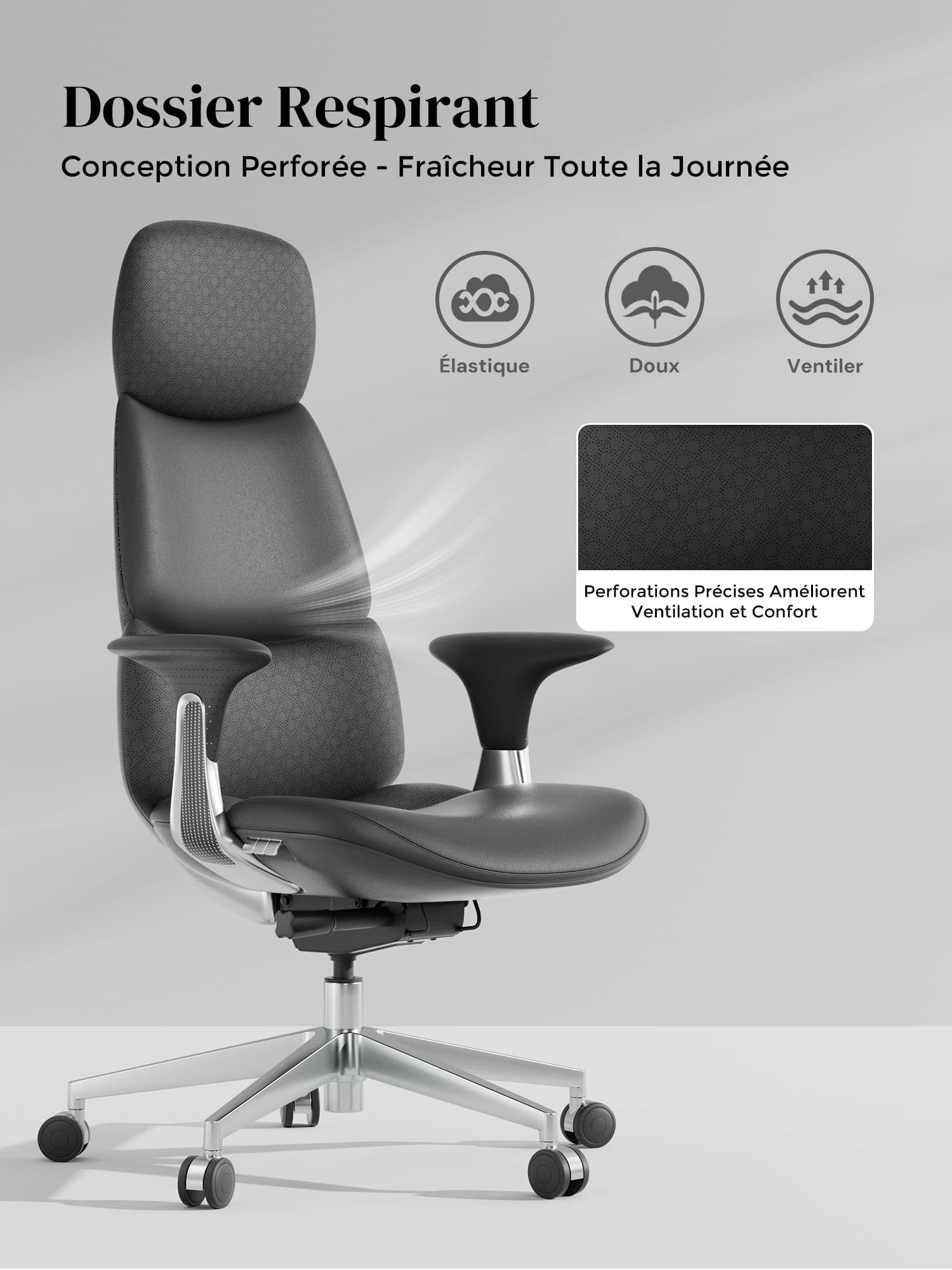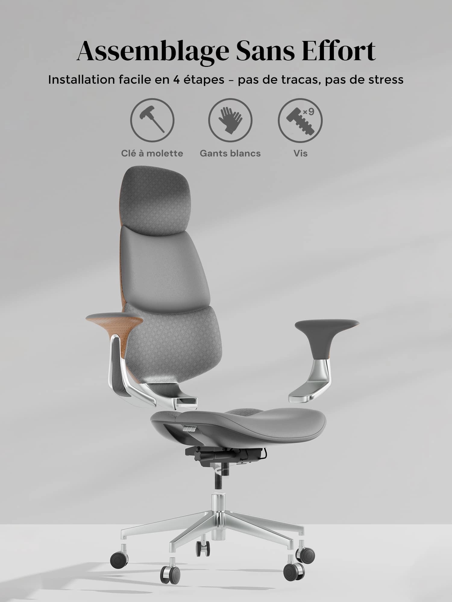 Roulettes silencieuses semi-aluminium haut de gamme, certifiées SGS / Greenguard Gold / normes ergonomiques TÜV.
