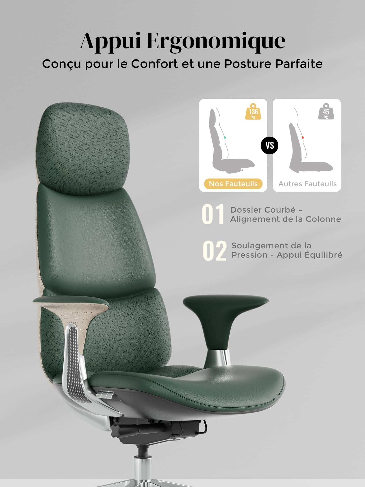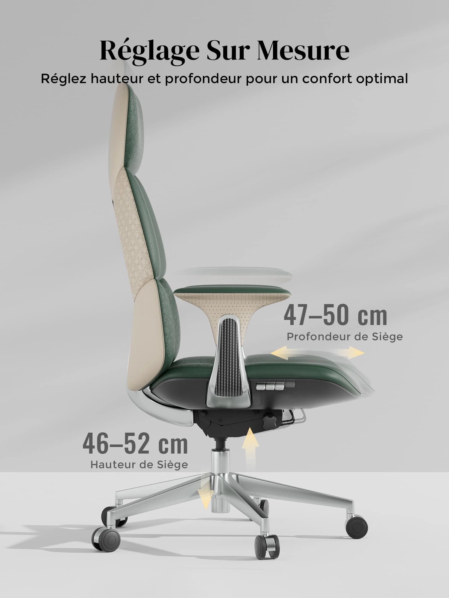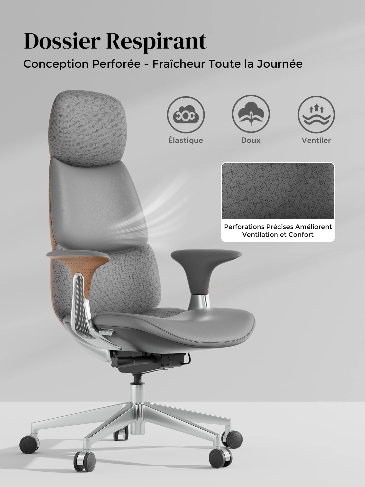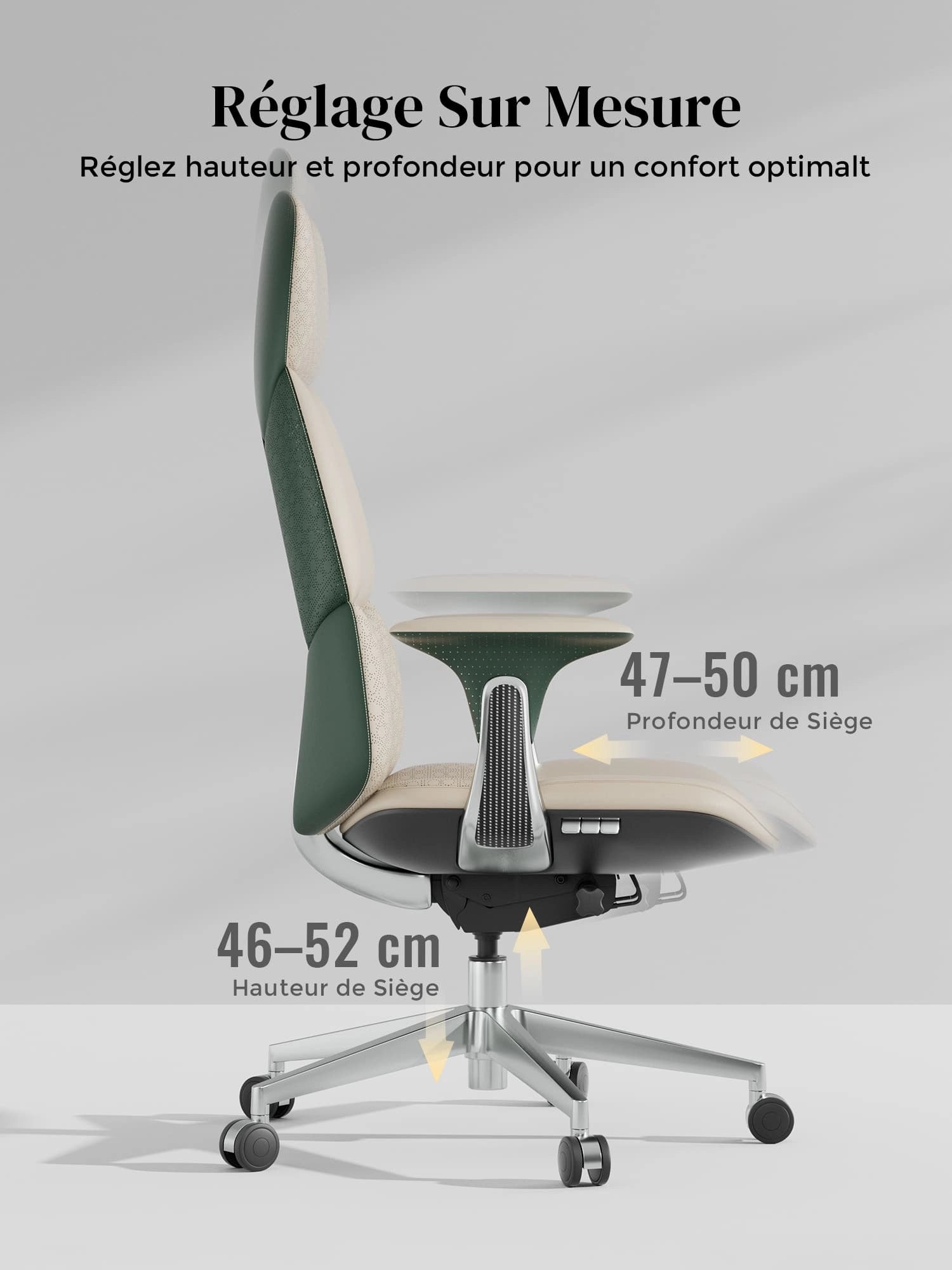 Roulettes silencieuses semi-aluminium haut de gamme, certifiées SGS / Greenguard Gold / normes ergonomiques TÜV.