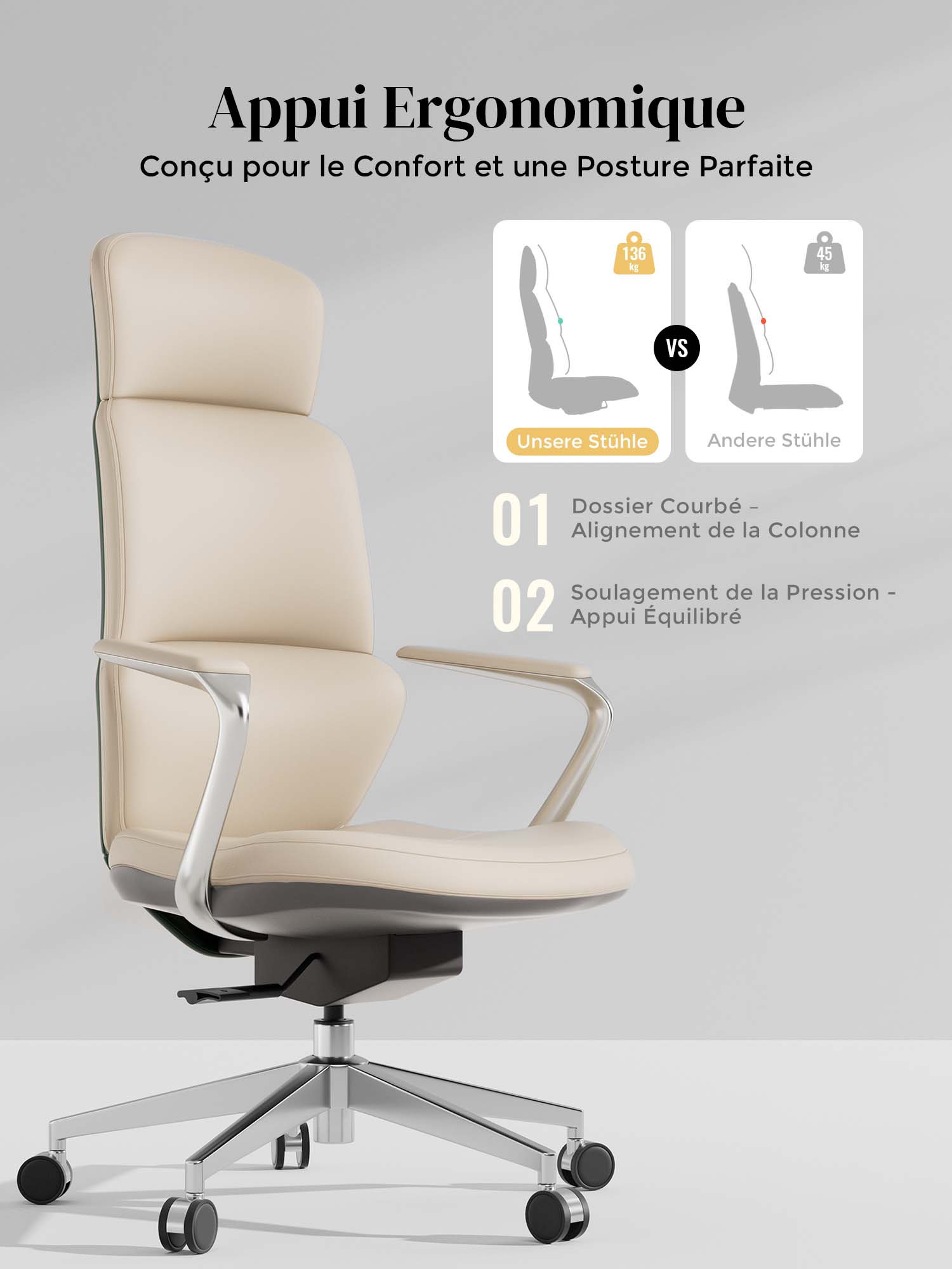 | Matériau de l'assise | Cuir ; Mousse polyuréthane |