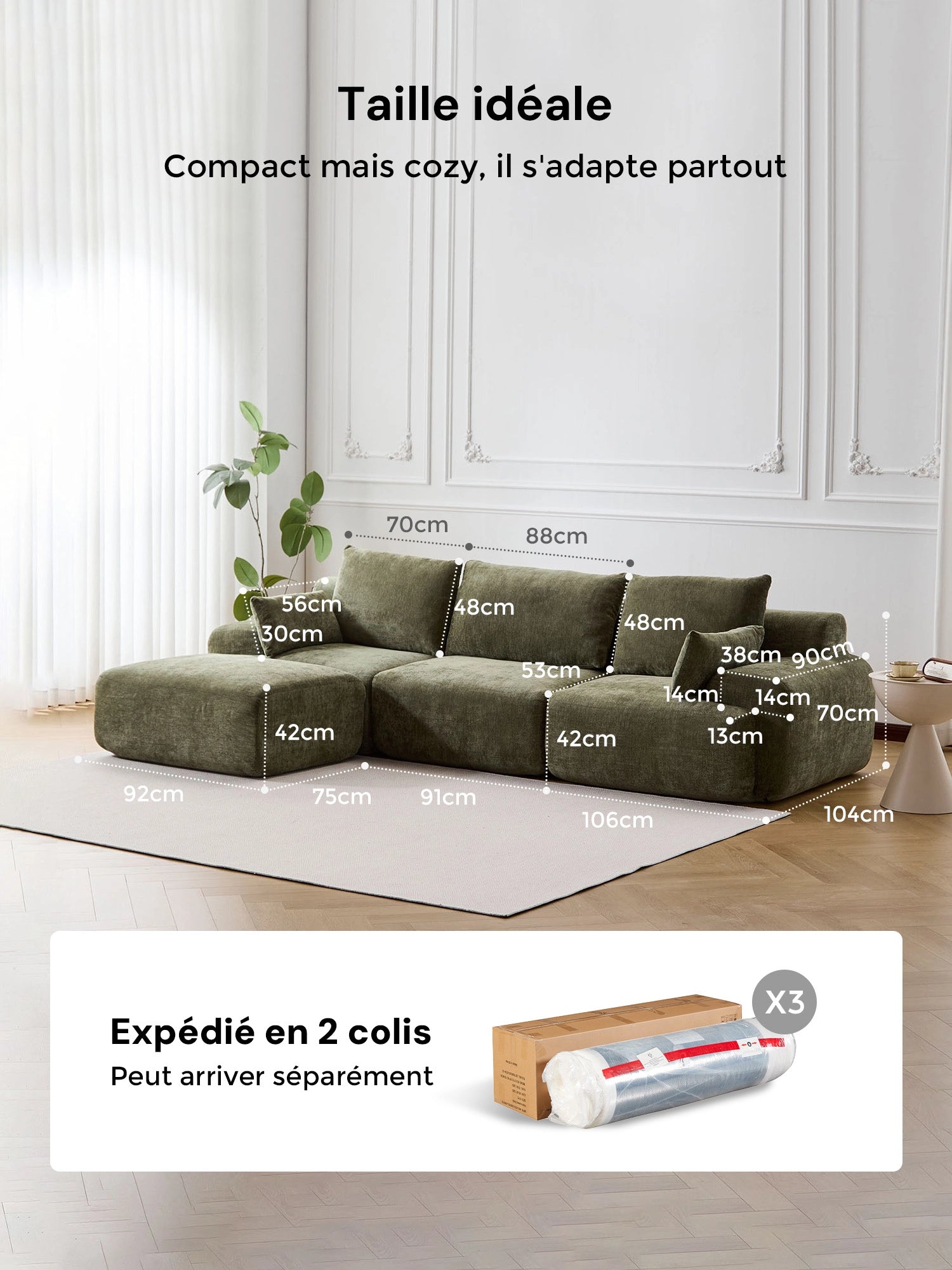 | Dimensions du produit | 104 cm (P) × 212 cm (L) × 40 cm (H) |